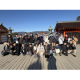 1月14日(水)、本日の最初の訪問場所は宮島です。青空の下、鮮やかな朱色の鳥居をバックに笑顔で記念撮影を行いました。その後は、宮島表参道商店街ではお土産選びに加え、揚げもみじやカレーパンを楽しみました。そして、フェリーに乗船。地よい潮風を浴び、光る海に浮かぶ鳥居を眺めました。