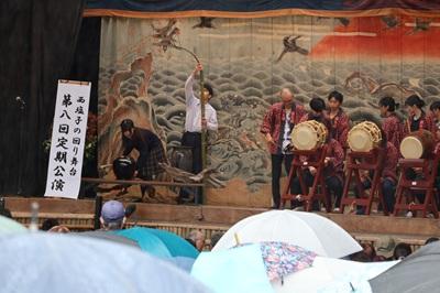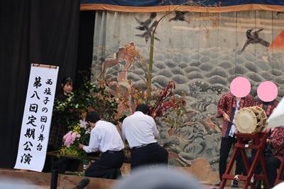 10月25日(土)、「西塩子の回り舞台」農村歌舞伎舞台のオープニングセレモニーで、華やかな開幕を飾る、「花いけパフォーマンス」を行いました。