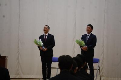 離任される先生方から、ご挨拶をいただき、「小瀬高校を去るのは本当に寂しいですが、皆さんのことをこれからもずっと見守っています。それぞれの目標に向かって、これからも頑張ってください」と、生徒たちへ向けた愛情あふれるエールと温かいメッセージが送られると、小瀬高校らしい、大変温かい雰囲気に会場は包まれました。
